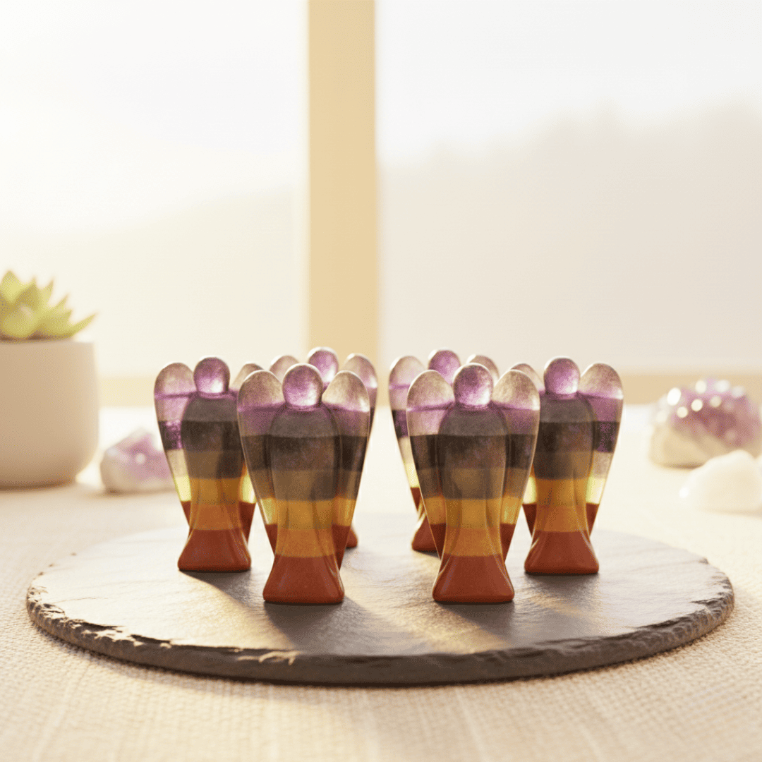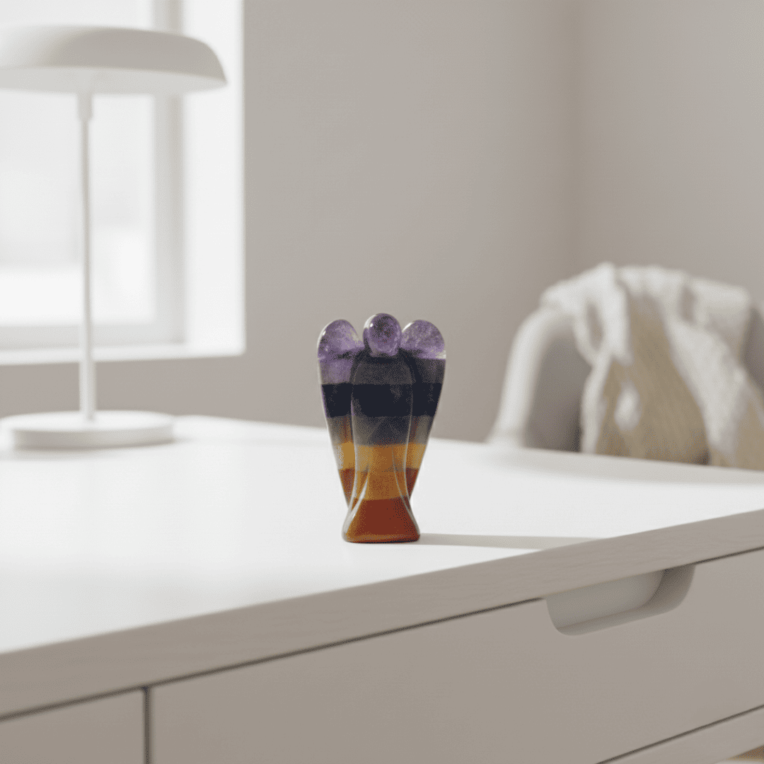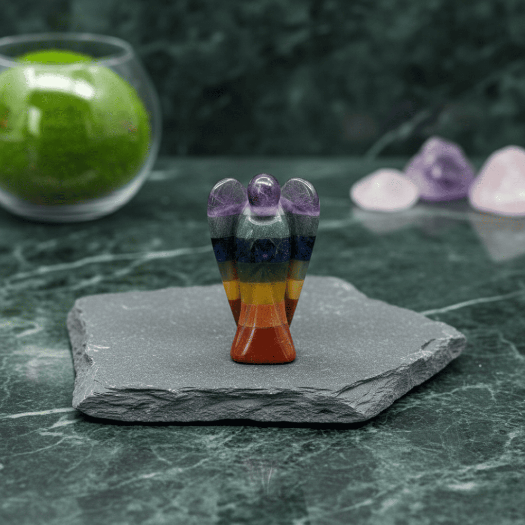 Invite a powerful source of balance, spiritual guidance, and positive energy into your space with this stunning Set of 2 Seven Chakra Crystal Angels. Expertly carved from natural stones, each angel features the seven vibrant colours corresponding to the body’s energy centres—from the Root to the Crown Chakra. The angel form embodies divine protection and support, making this set a potent tool for spiritual wellness and beautiful Decoration.
