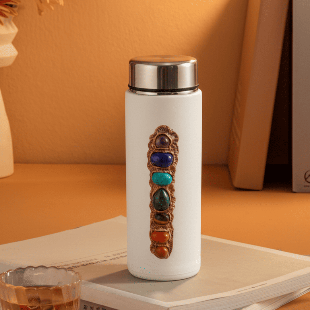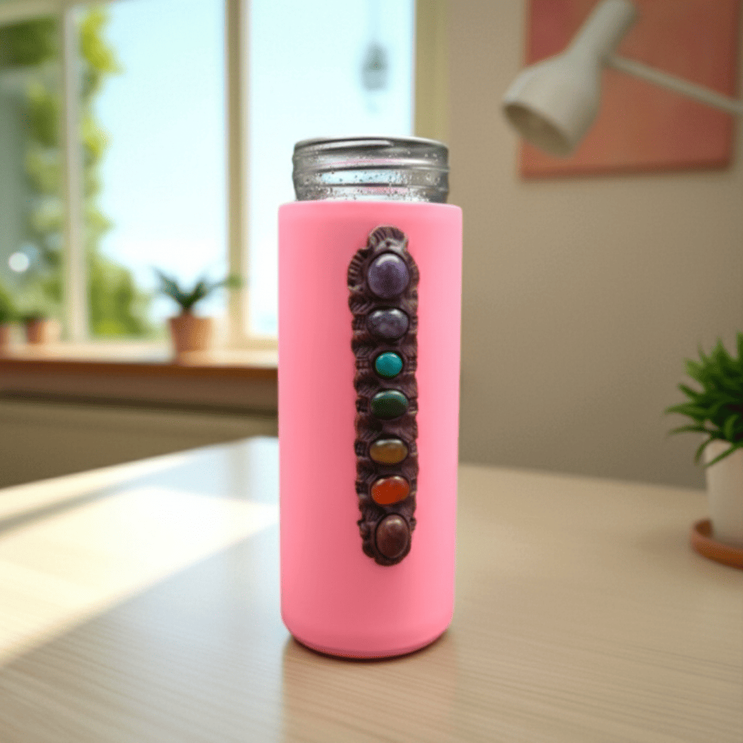 Elevate your daily hydration routine with the 7 Chakra Studded Water Bottle. This unique accessory combines a stylish glass/plastic bottle with a decorative vertical arrangement of Natural 7 Chakra Gemstones, visually representing the alignment of your body’s seven energy centres. It’s the perfect fusion of wellness, mindfulness, and practical daily hydration.