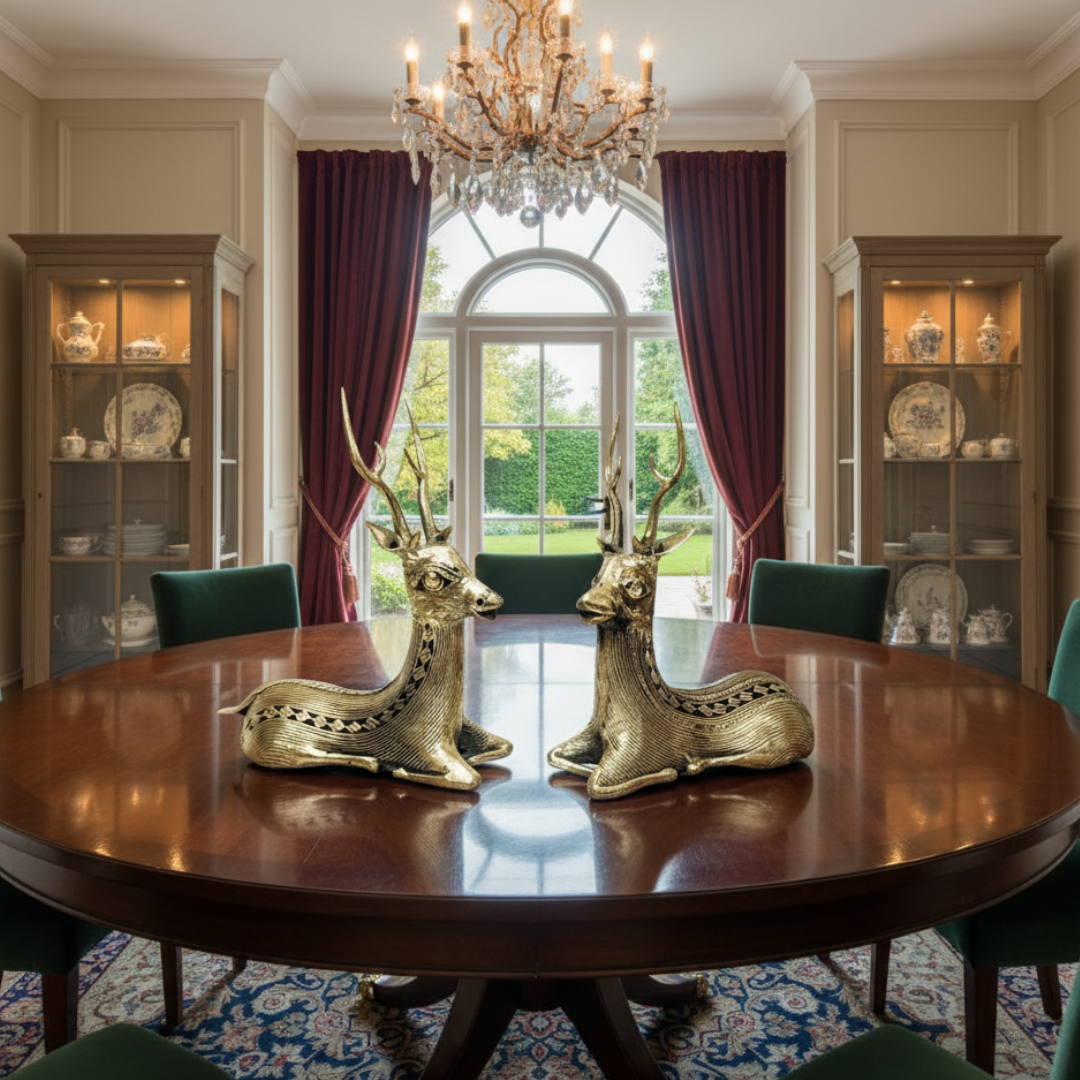 Handmade in brass (bell metal) using 4000 yr old lost wax casting technique called Dhokra (gadhwa) of Chhattisgarh.
