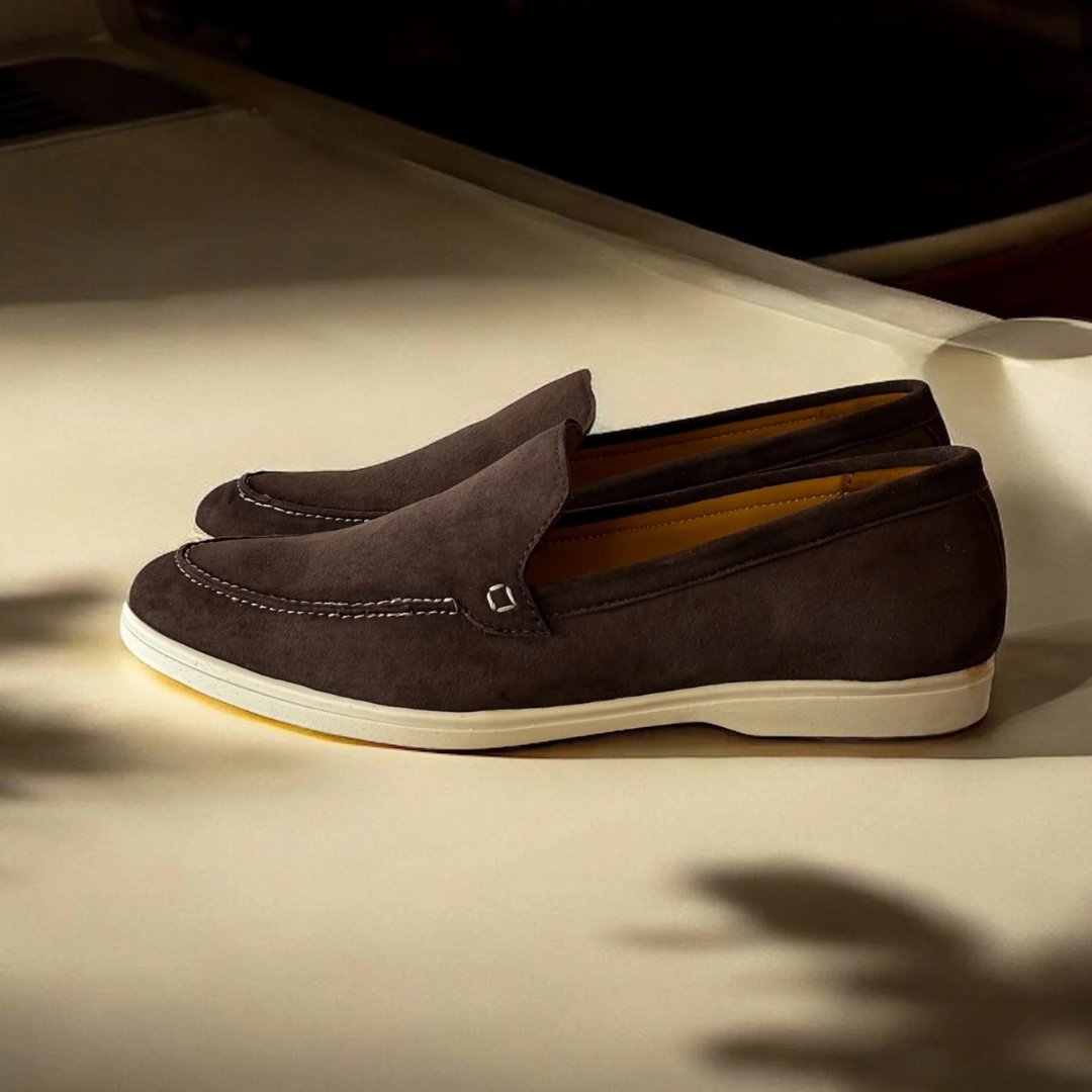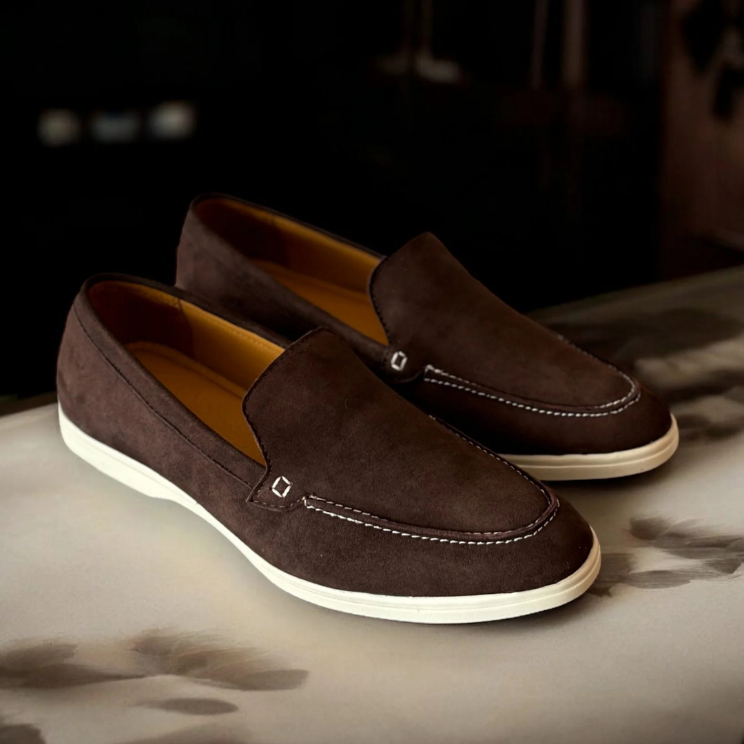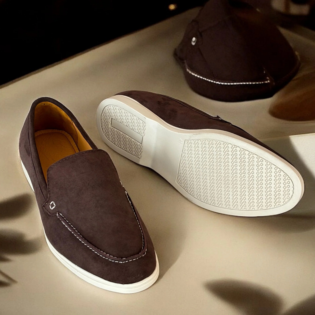 These slip-ons are crafted from rich leather that offers both durability and a luxurious feel.