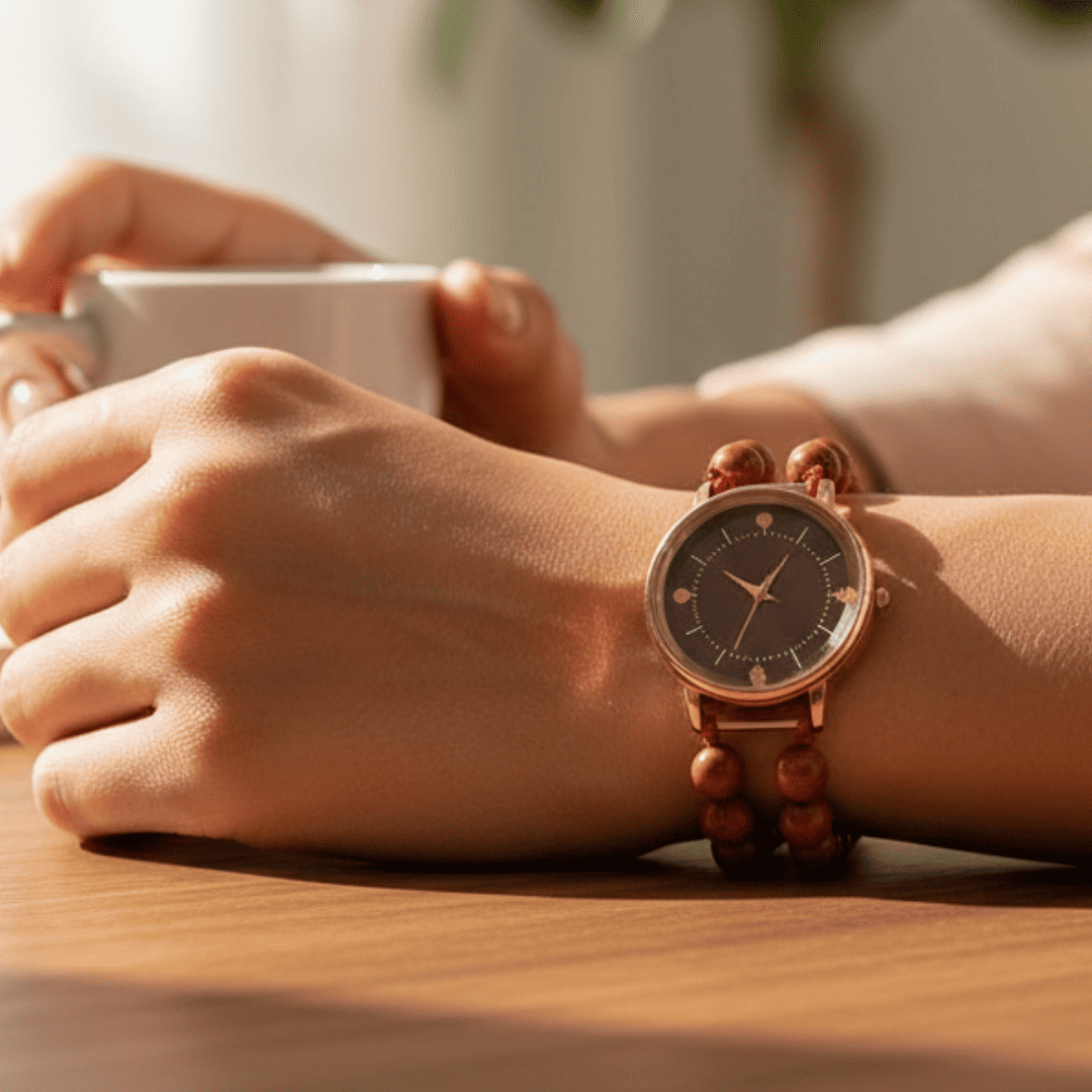 Elevate your wristwear with this elegant Crystal Watch, a striking combination of a classic Analogue timepiece and a powerful healing stone Bracelet. This is the perfect Luxury accessory for Women who seek style, functionality, and daily energetic support. The unique Strap Material consists of genuine Stone beads (available in sizes 6mm and 8mm), allowing you to carry the stone’s positive vibrations directly on your pulse.