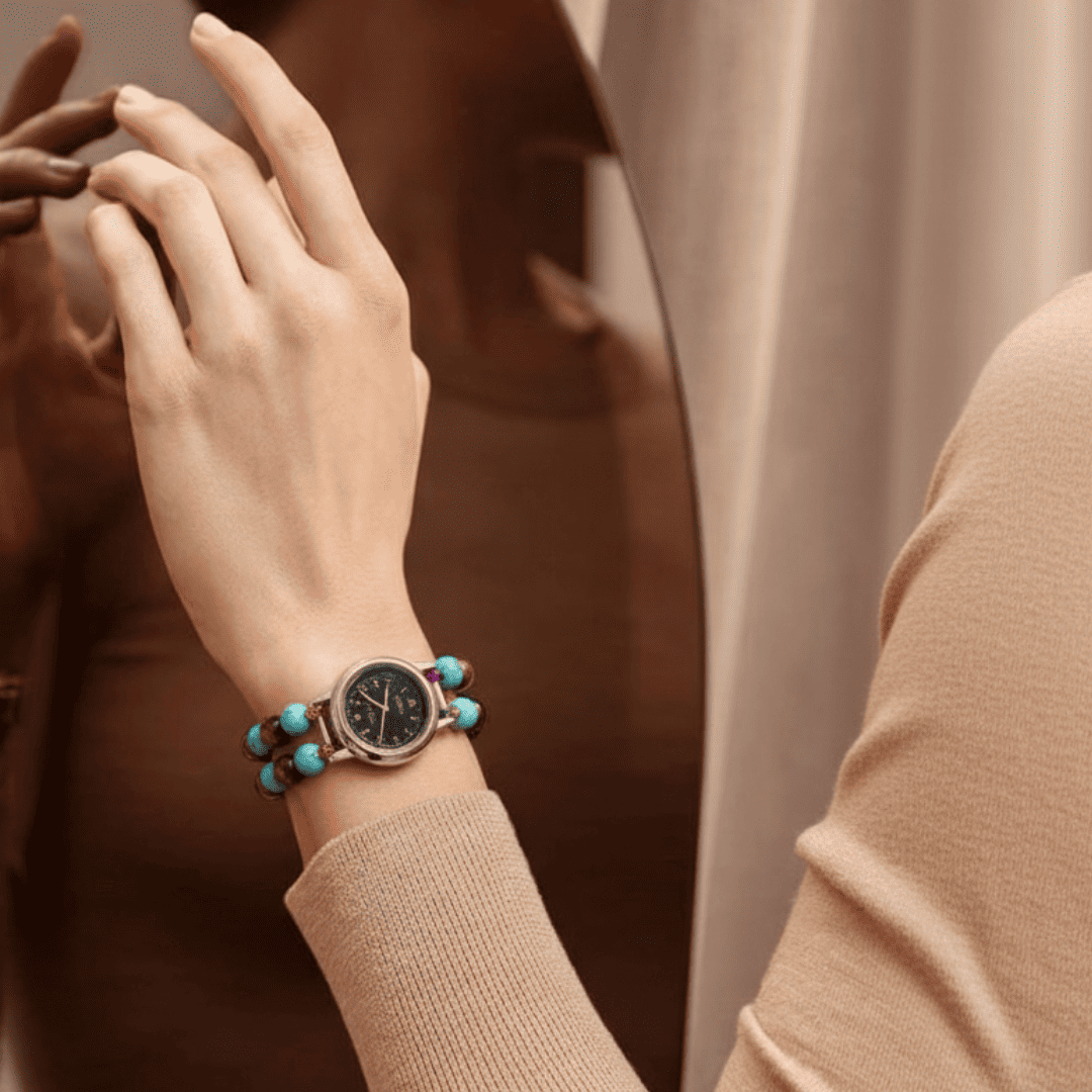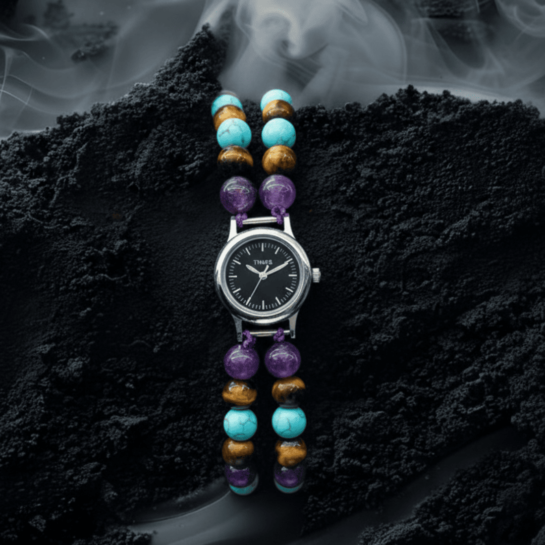 - Healing Reminder: Your watch serves as a visible reminder of your purpose, harnessing the energy of stones like Amethyst (Calm), Tiger Eye (Confidence), or Jasper (Grounding).