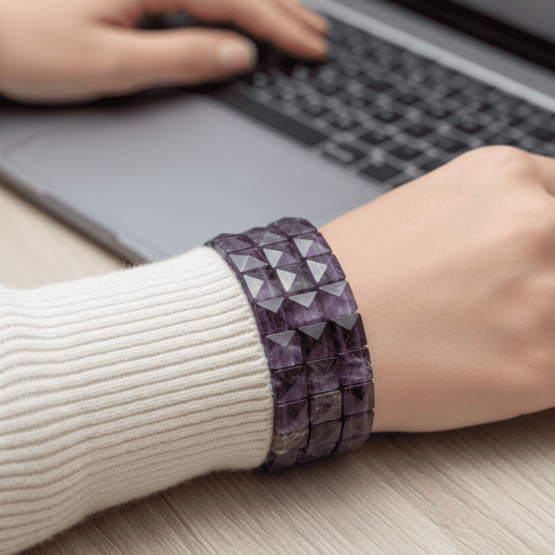 Elevate your energy and style with this Luxury Pair of Pyramid Crystal Bracelets. Unlike traditional round beads, these bracelets are crafted with perfectly shaped, geometric stones (cubes or faceted pyramids) that amplify the stone’s inherent power. Featuring Multistone options like calming Amethyst, empowering Citrine, and protective Obsidian, these bracelets are both striking accessories and potent tools For Healing.