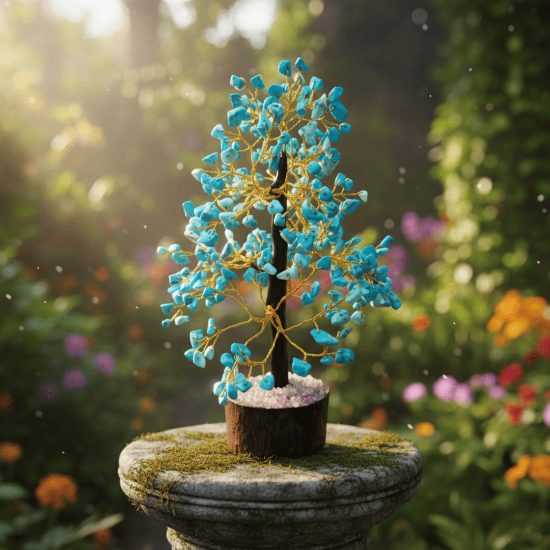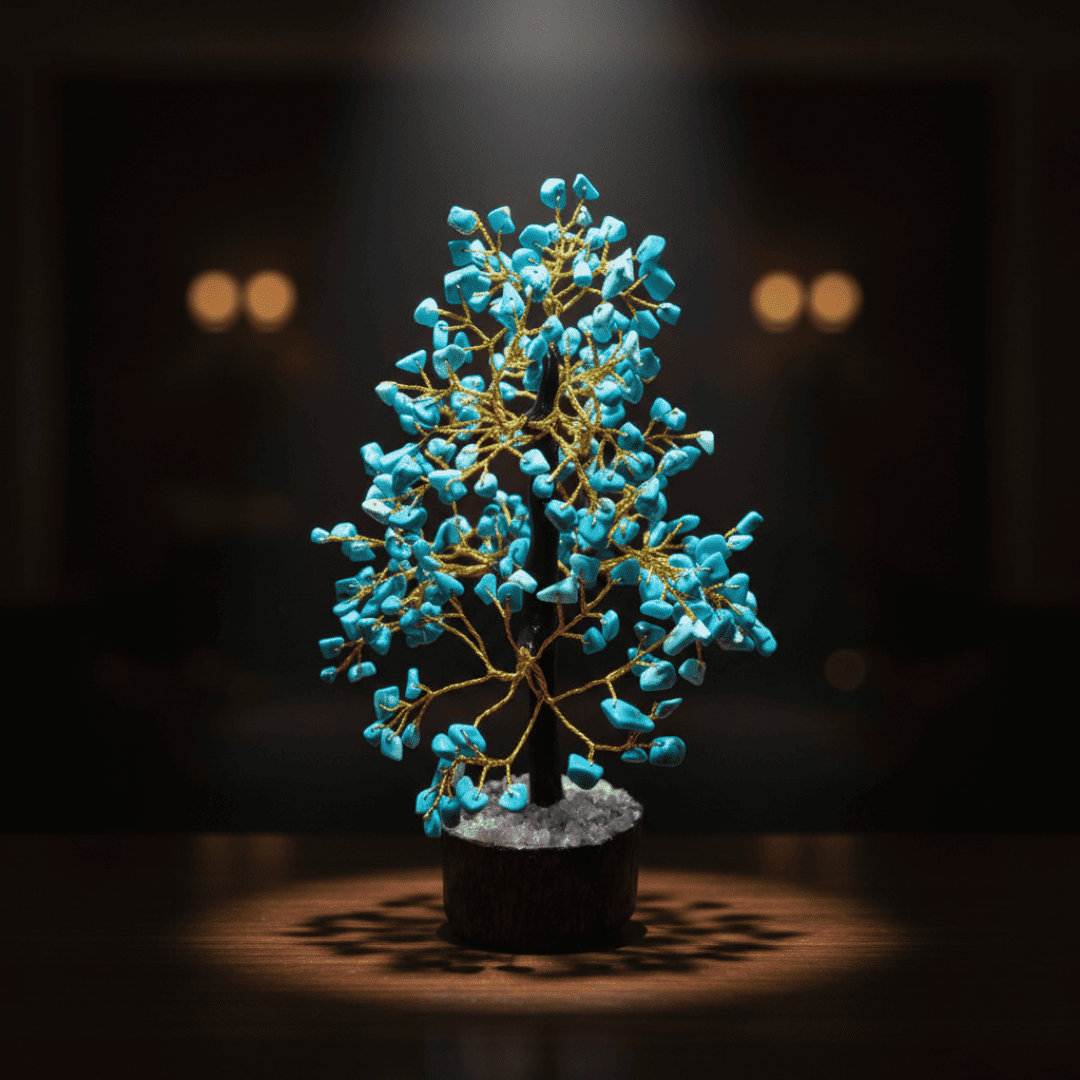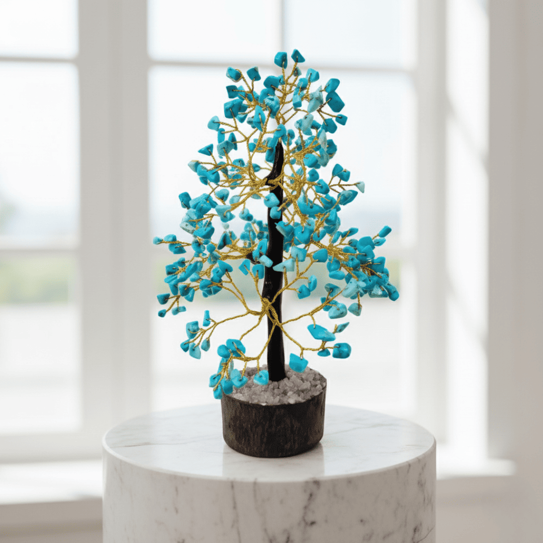 Bring the calming, protective energy of the sky into your home with this magnificent Natural Blue Turquoise Crystal Tree. This unique piece features vibrant Sky Blue Turquoise chips (approximately 300 beads) hand-wired onto a sturdy trunk and base, symbolizing stability, growth, and divine protection. Standing at a substantial 10 to 12 Inches, it serves as a powerful and beautiful focal point for any room, office, or meditation space.
