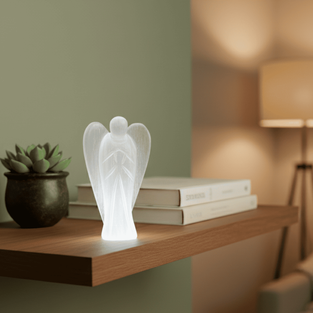 Invite the energy of guidance, peace, and divine protection into your Home with this beautiful Natural Selenite Angel Figurine. Expertly carved from high-vibration Selenite, this angel embodies the stone’s pure, white light. Selenite is renowned as a primary stone for Angelic Healing, helping to establish clear communication with angels and spirit guides for profound wisdom and direction.