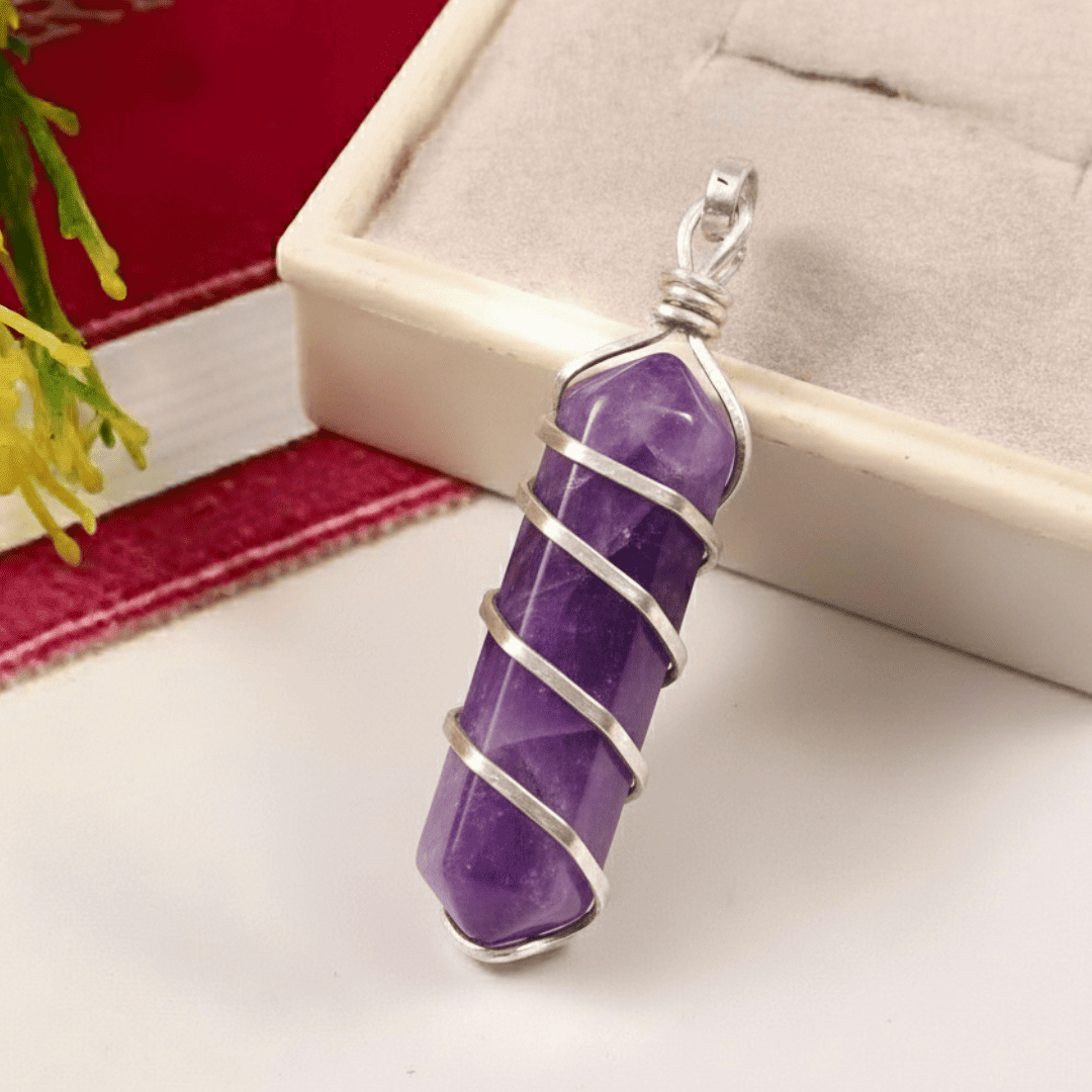 Amplify your spiritual intentions with this elegant Natural Stone Wire Wrapped Pencil Pendants. Each pendant features a genuine, hand-polished Natural Stone (such as Amethyst, Citrine, Lapis Lazuli, or Red Jasper) meticulously wrapped in metal wire. The Pencil Shape is intentionally designed to focus the energy of the crystal on specific points, making this a potent tool for energy work.