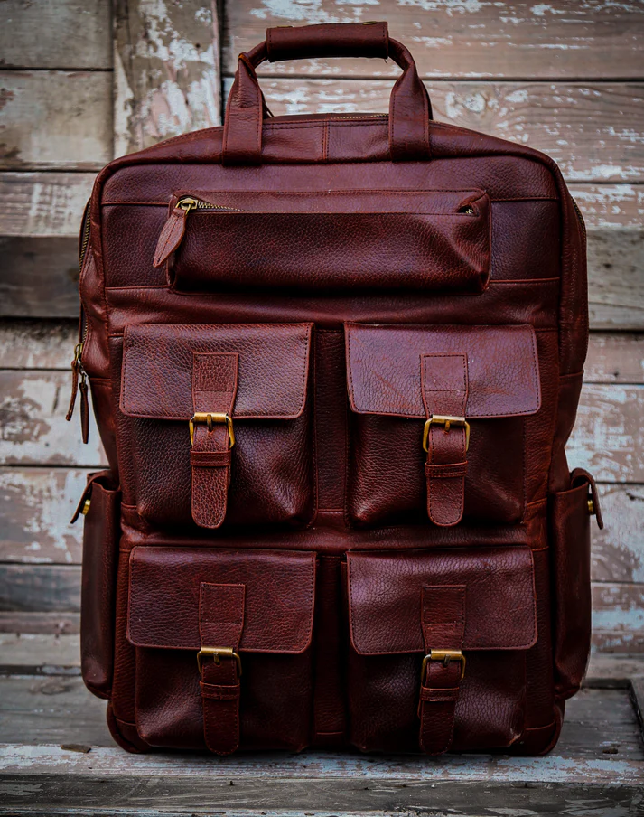 The quintessential leather backpack, build for heavy-duty use, padded shoulder strap provides extra comfort.