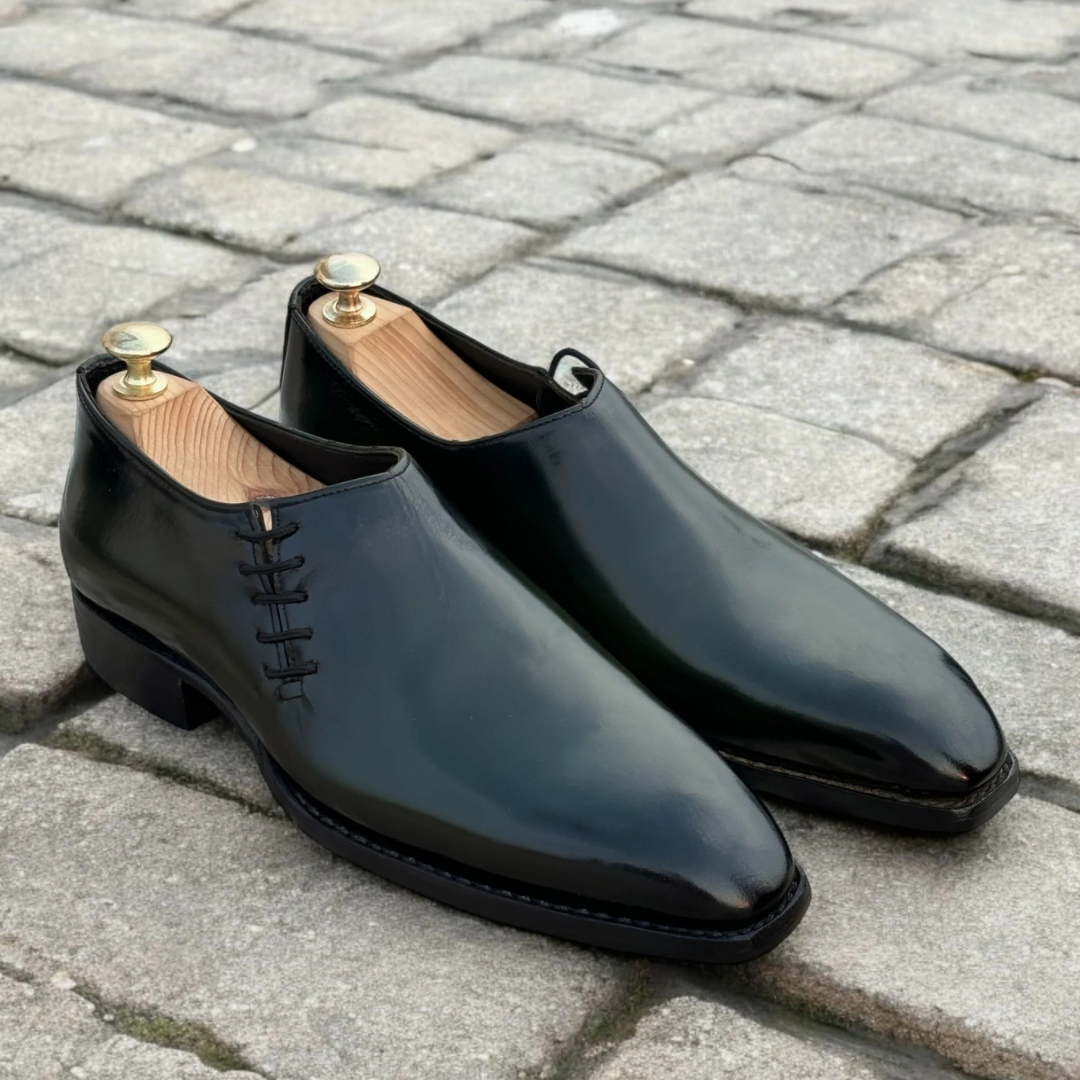 Ancient Crafting shoes are hand-finished and couture-level creations. Hence, each shoe will have a unique hue and polish, and the color may differ slightly from the picture.
