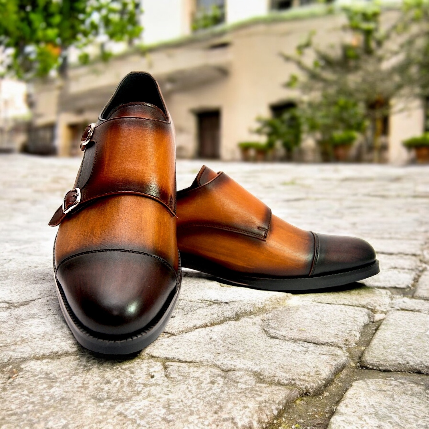 Ancient Crafting Tan Monk Shoes, a perfect fusion of classic design and modern elegance. Crafted from rich tan leather, these shoes feature a sleek single or double buckle closure, offering both style and a secure fit.