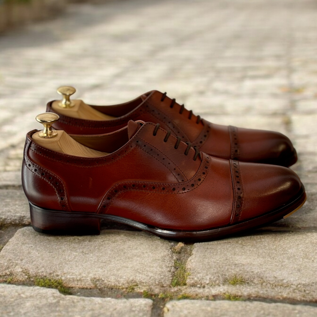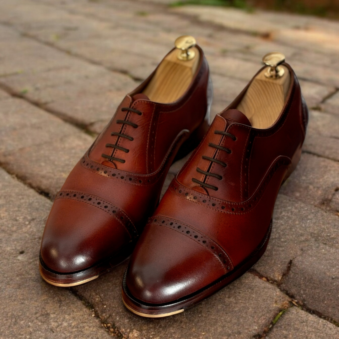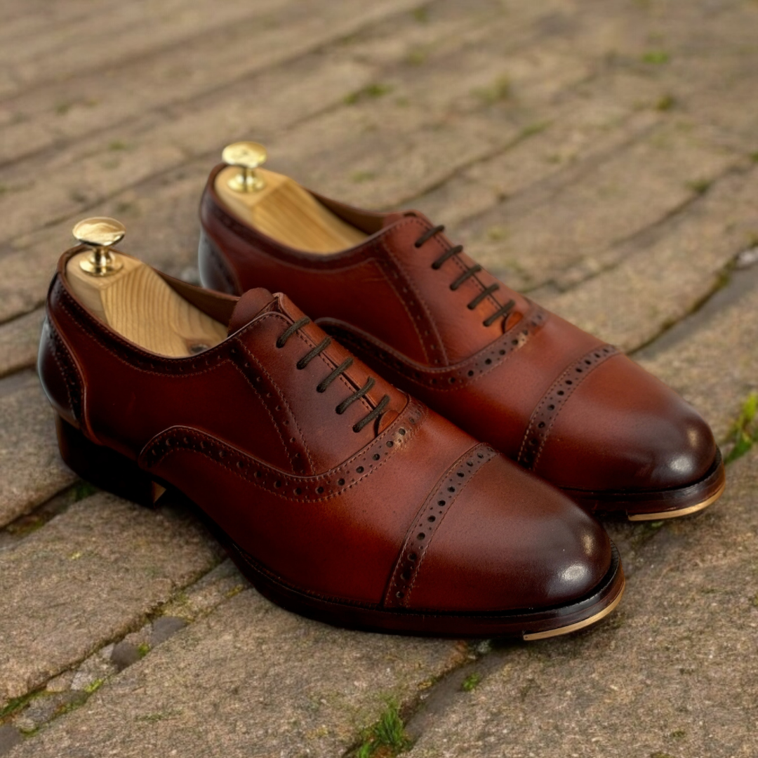 These shoes feature a rich tan leather that adds a warm, sophisticated touch to any outfit. The traditional lace-up design ensures a customised fit and a refined silhouette, perfect for both business and casual settings.
