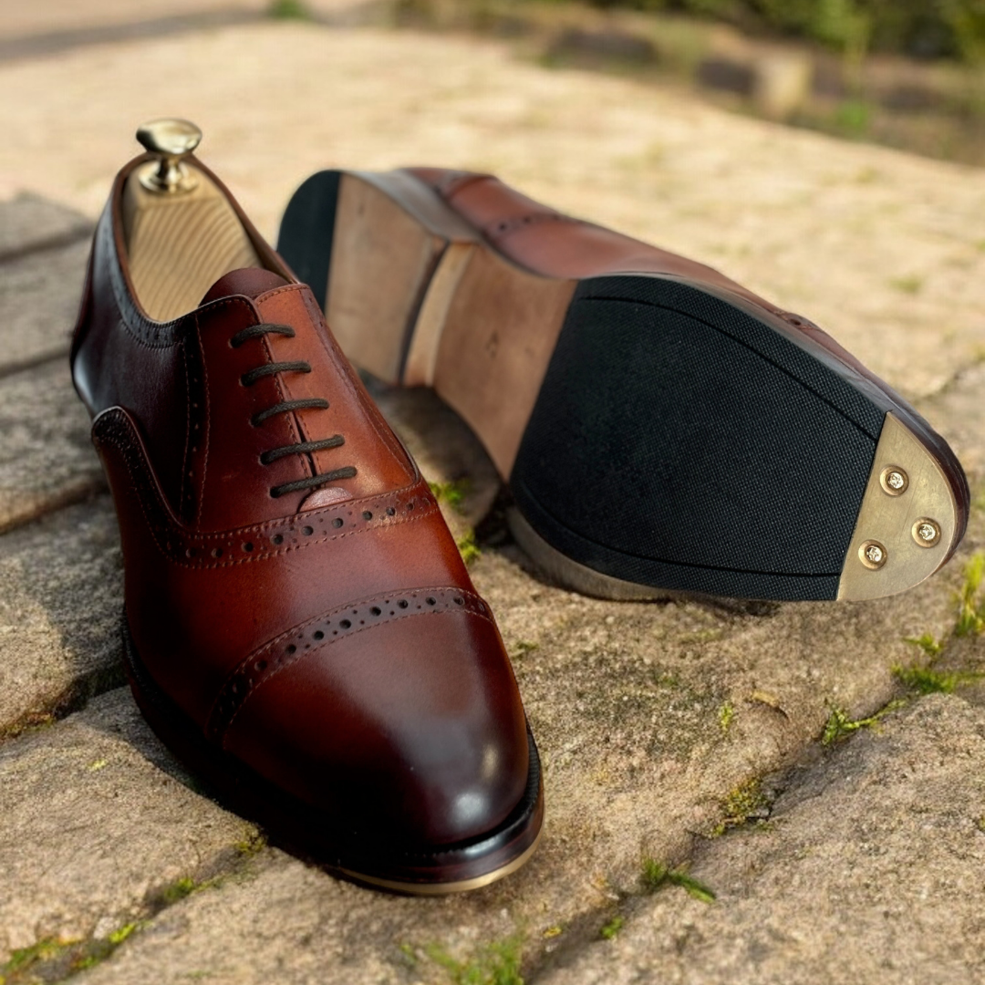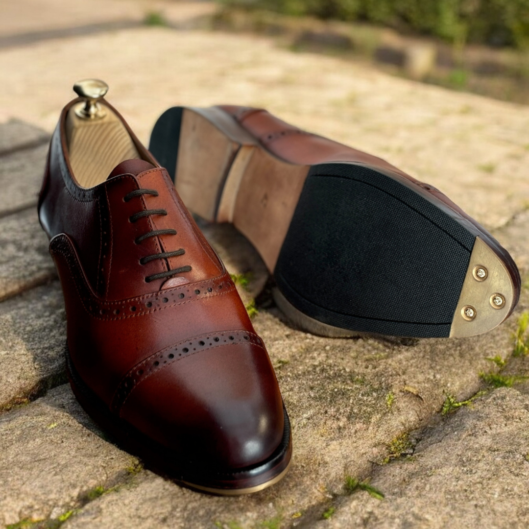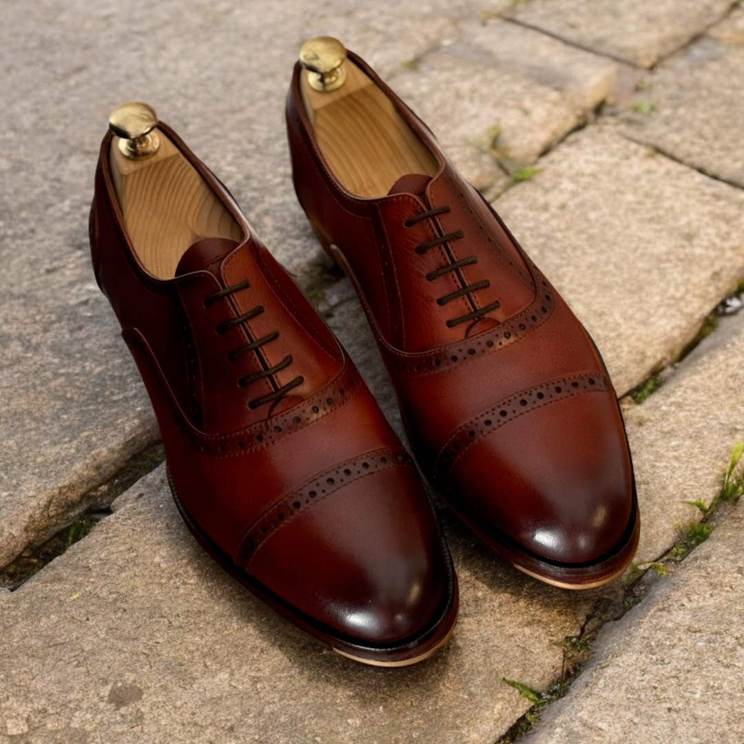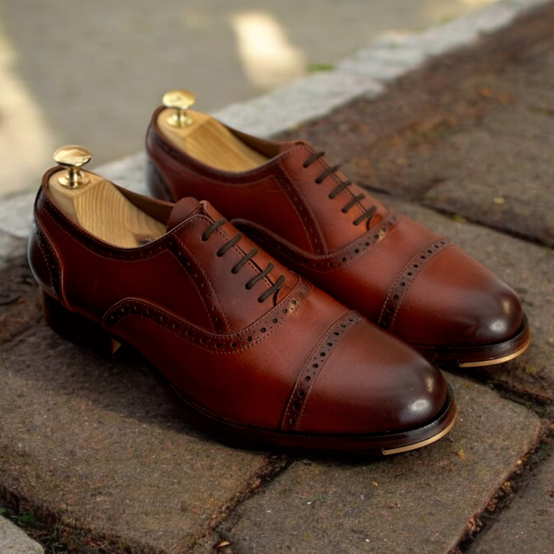 These shoes feature a rich tan leather that adds a warm, sophisticated touch to any outfit. The traditional lace-up design ensures a customised fit and a refined silhouette, perfect for both business and casual settings.