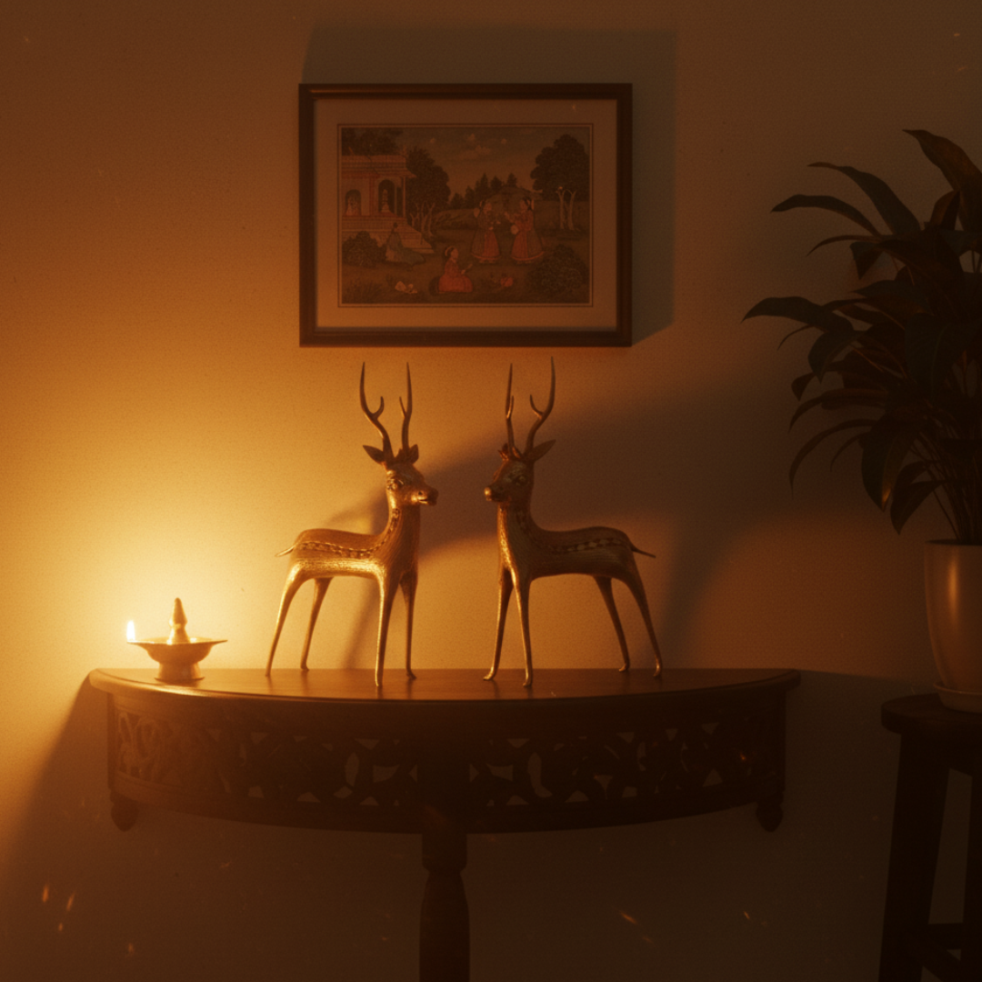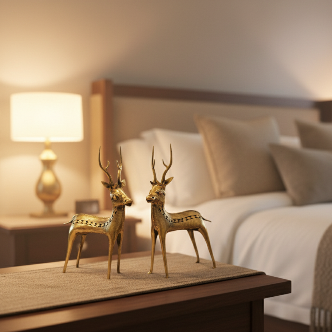 Beautiful and Unique Dhokra Art (Bastar Art) Standing Deer Pair Statues (showpieces) from realcrafts.in. These beauties are ideal for your home decoration/gifting purposes.