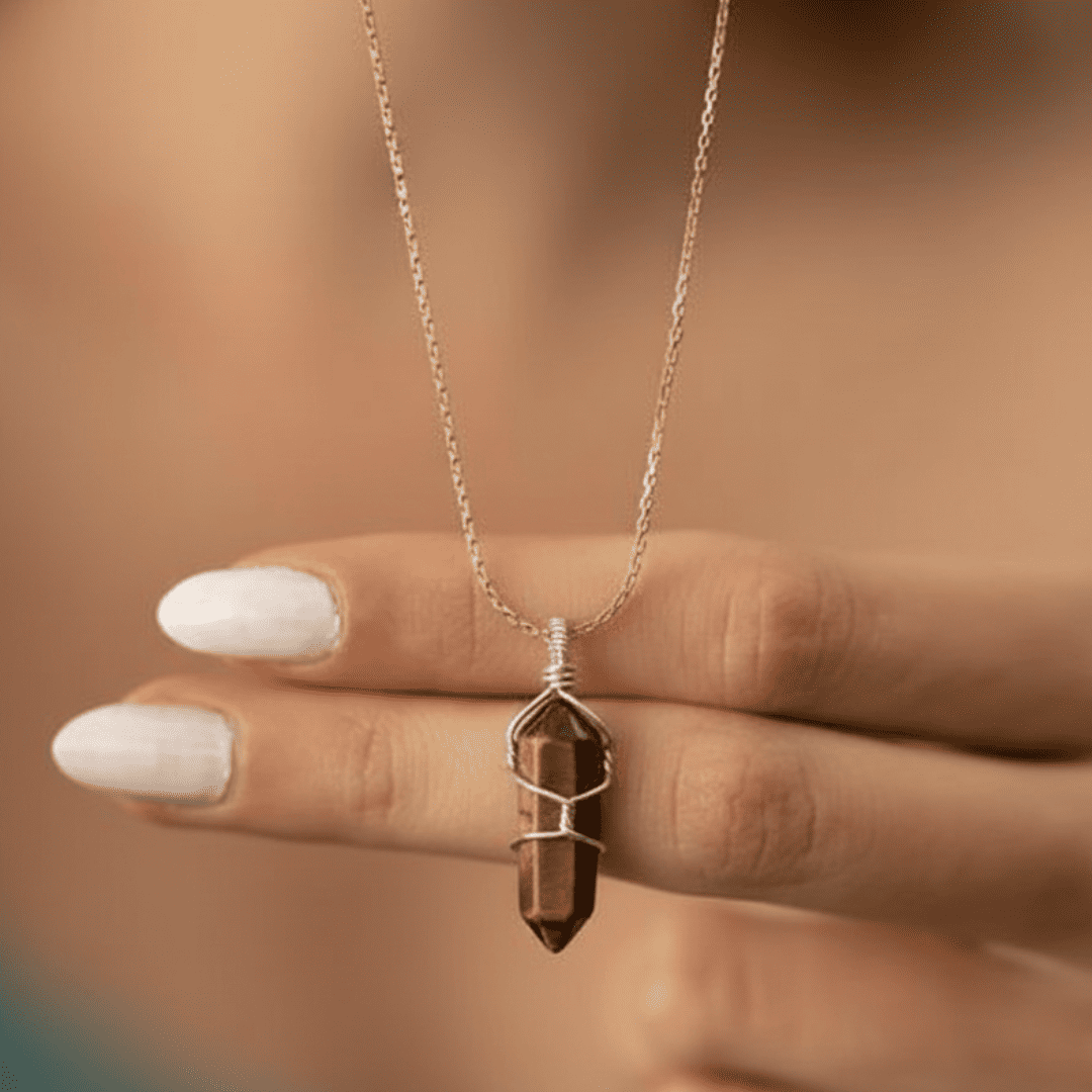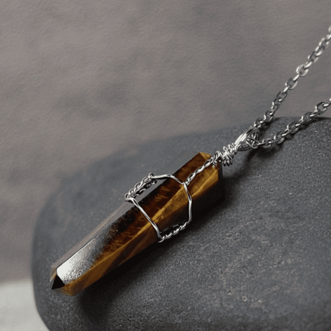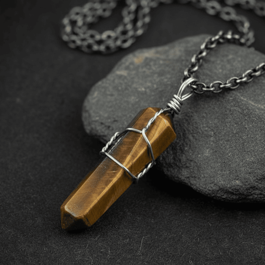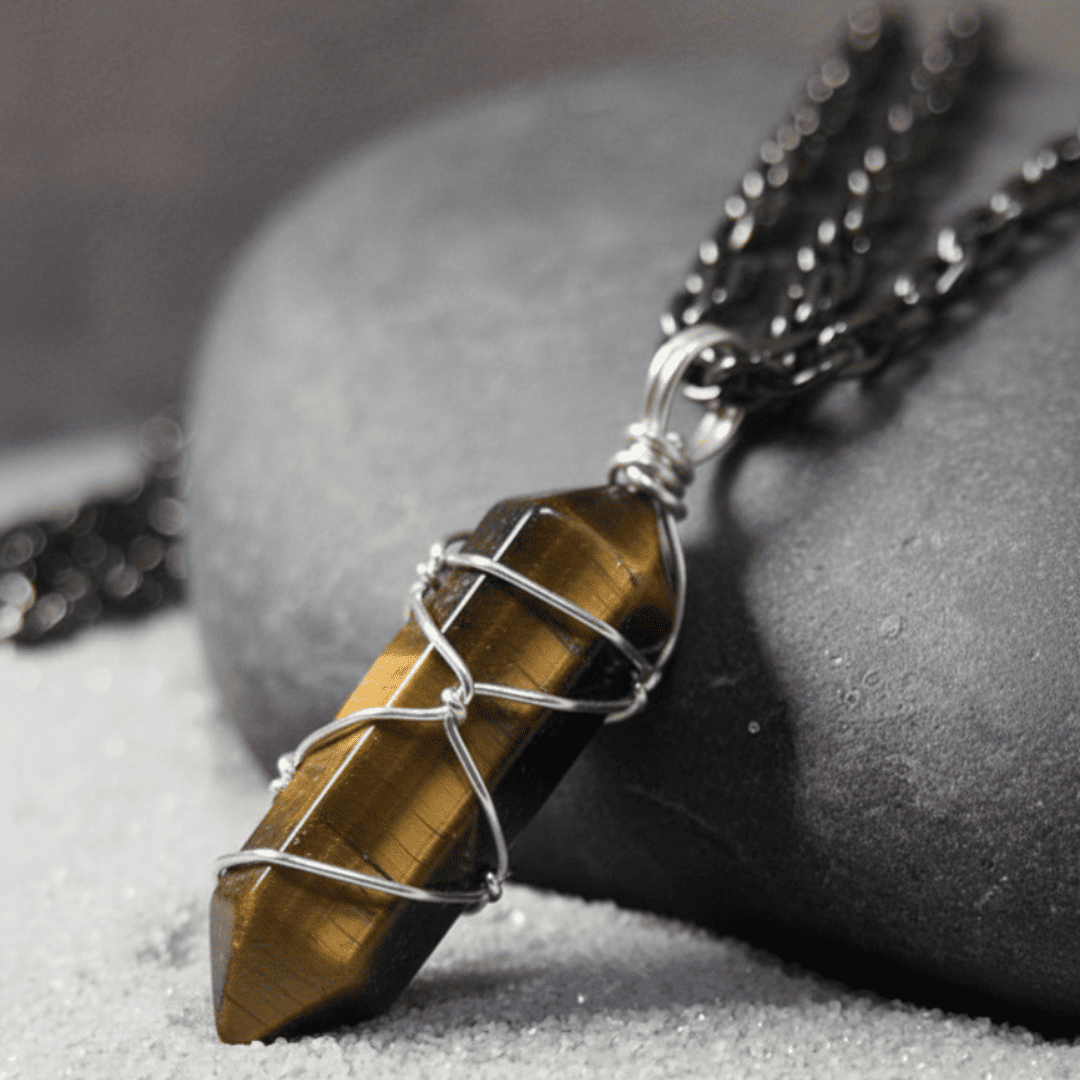 - Material: Stone (Tiger Eye), Metal Wire (Wrapping)
